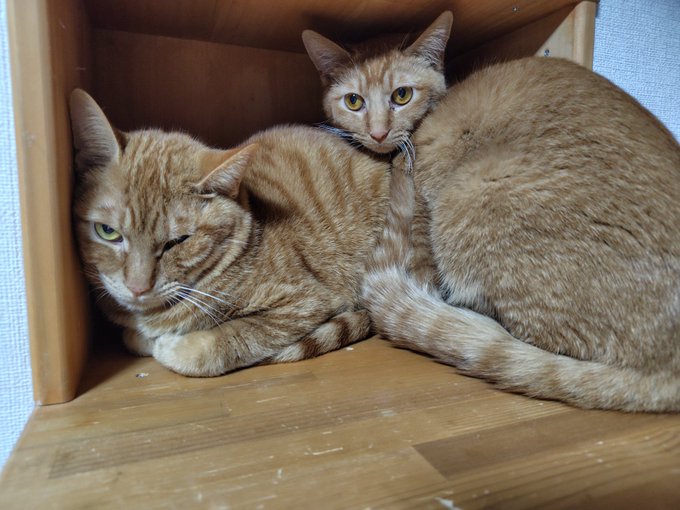 眉間の模様がマロ眉に見えるので、「まゆ」ちゃんと命名しました。